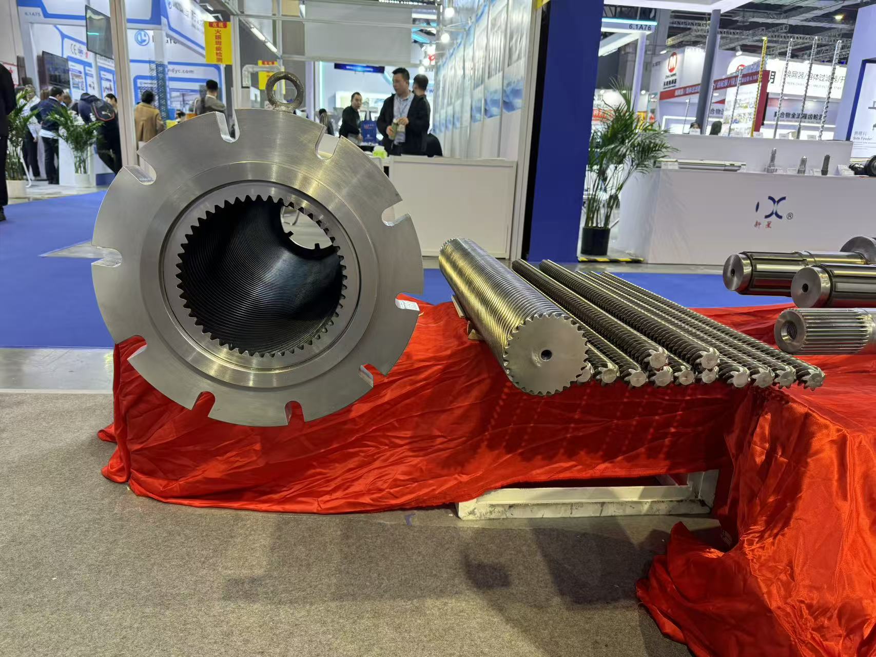 Stánok bol profesionálne usporiadaný a produkty boli vystavené usporiadaným spôsobom, vrátane rôznych špecifikácií komponentov skrutiek (dvojskrutka, planétová skrutka, skrutka so špeciálnou hlavou atď.), čo plne demonštrovalo silu výskumu a vývoja spoločnosti a úroveň výroby.